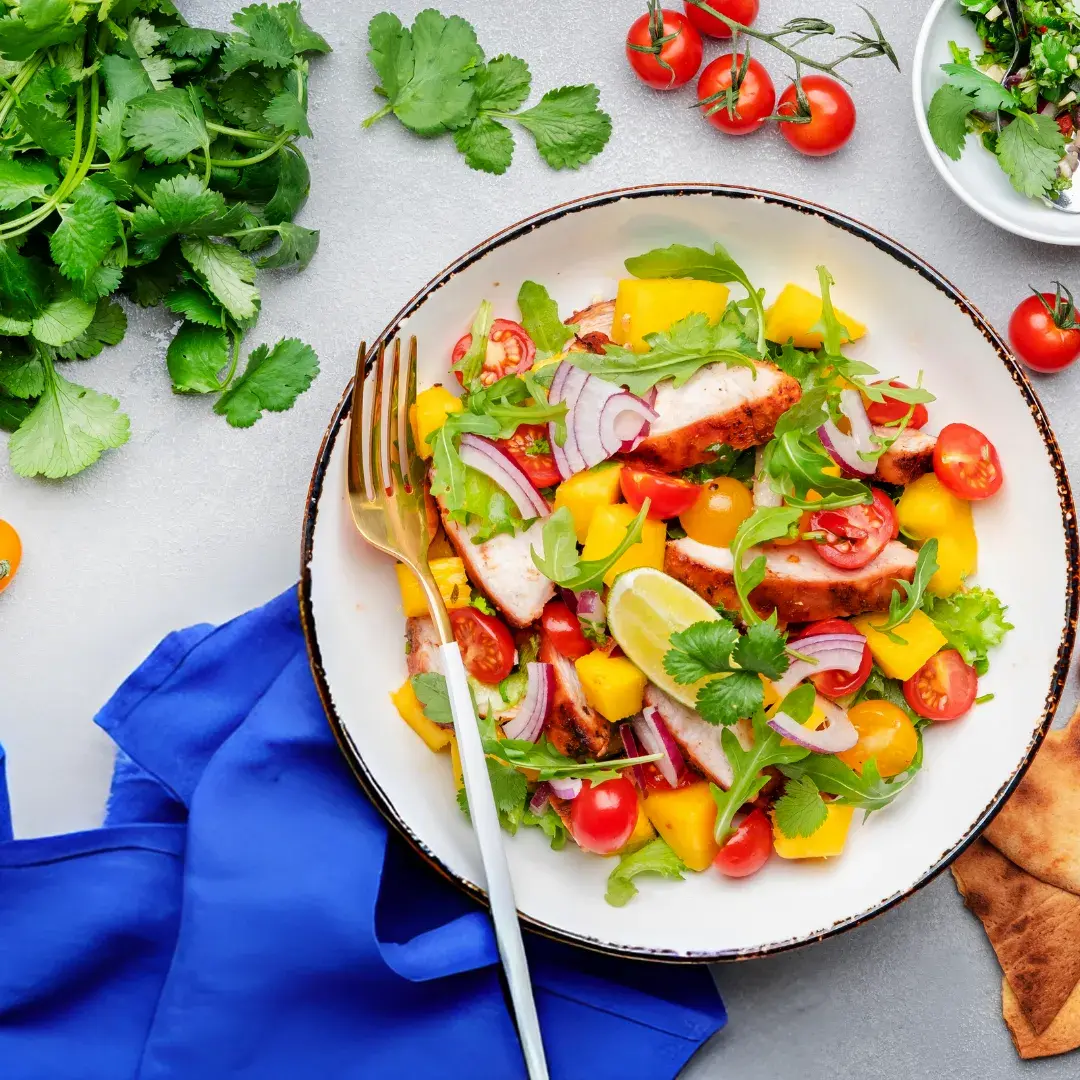 4- Ensalada Fresca: Acompaa el pollo con una ensalada fresca, como una ensalada de espinacas con aguacate y vinagreta de miel y mostaza, para equilibrar el plato y aadir ms verduras.