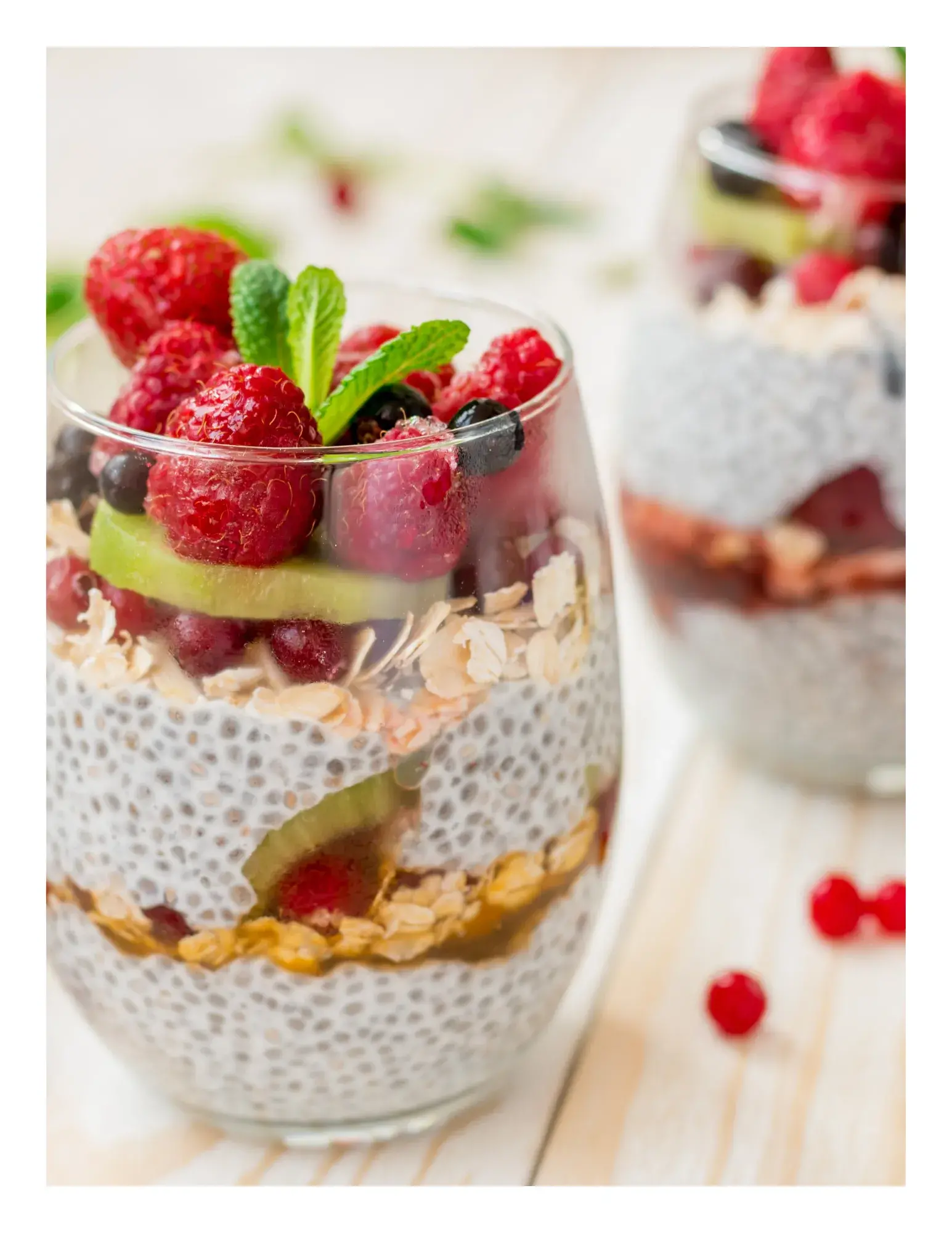 Opcional: blueberries, hojas de menta, raspberry, kiwi